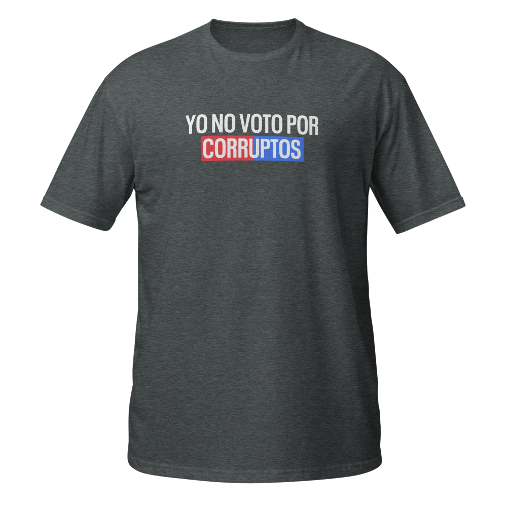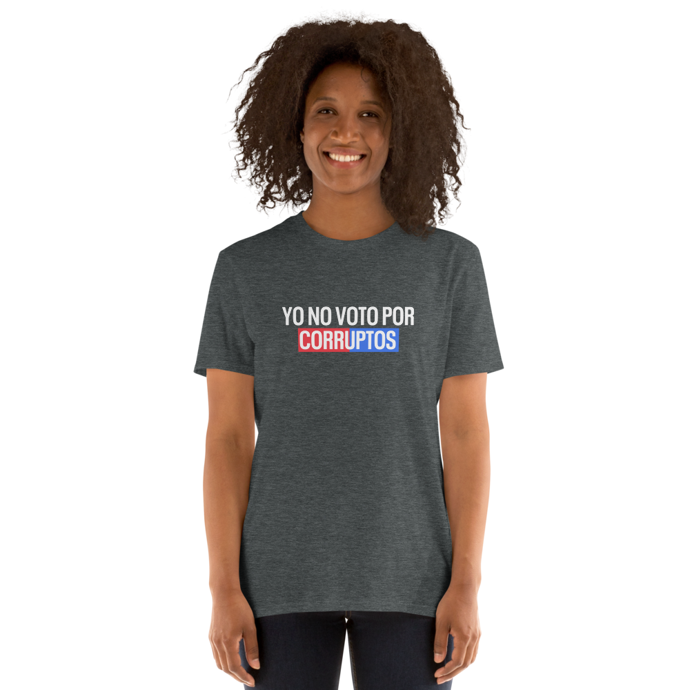 'Yo no voto por corruptos' es más que una simple declaración; es un compromiso con un futuro más honesto y transparente para Puerto Rico. Confeccionada con materiales de alta calidad y un diseño moderno, esta camiseta es perfecta para expresar tu hartazgo con la corrupción en nuestro país. Cuando la uses en manifestaciones, reuniones políticas o simplemente en tu día a día, esta camiseta te hará sentir lista o listo para hacer un cambio. ¡Únete a la lucha contra la corrupción con esta camiseta y haz que tu voz sea escuchada!"